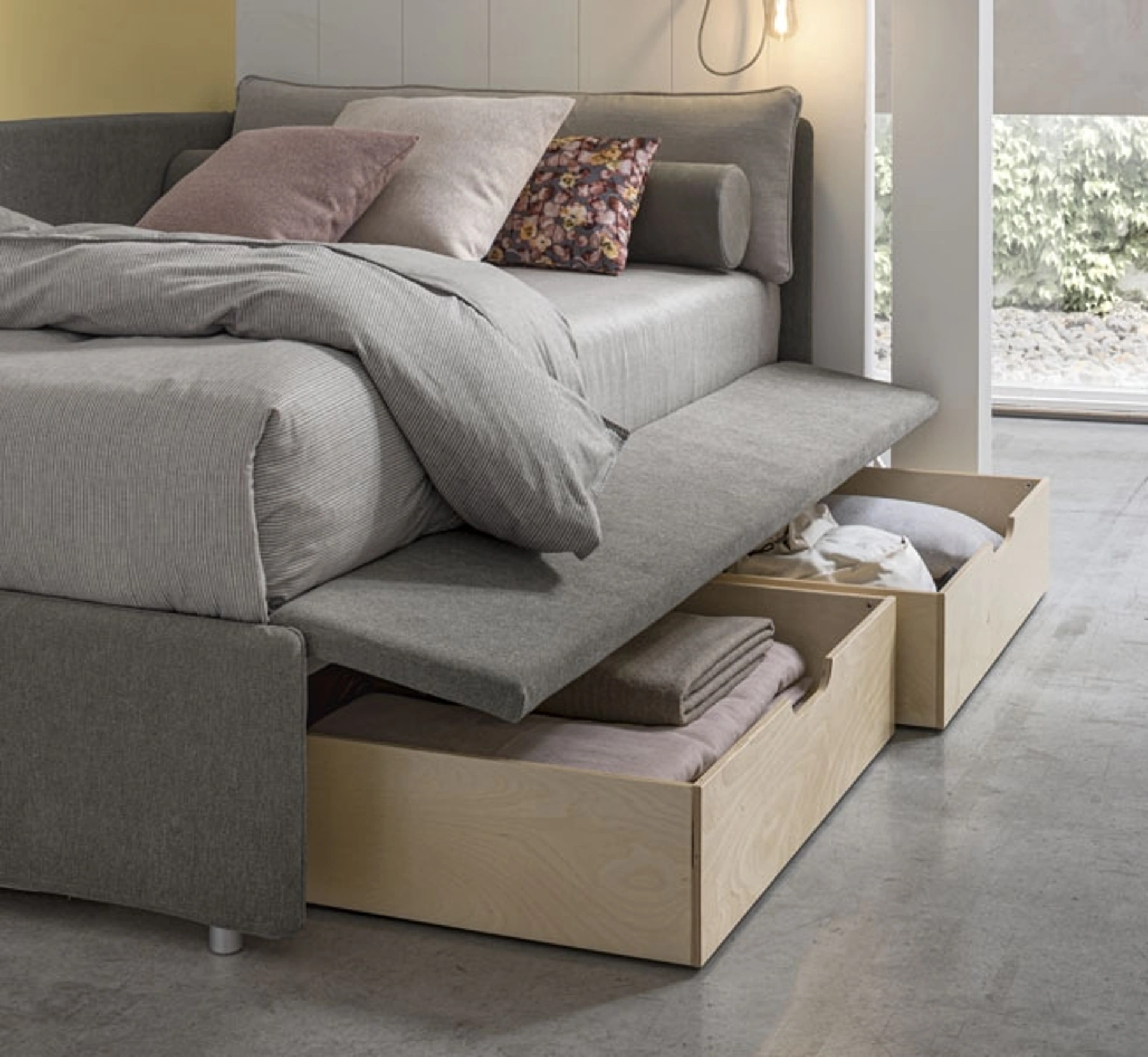 Un ricco catalogo di letti moderni in tessuto ti aspetta: il marchio V&Nice propone diverse versioni di letto, che rispondono sempre alle richieste dei bambini. Scopri di più sul Daybed Singolo con secondo letto estraibile o contenitore Joy Estraibile di V&Nice nell'immagine: è ideale per ricreare al meglio un ambiente accogliente, bello e ben organizzato, ideale per i tuoi bambini. Materiali di qualità e pitture ecologiche caratterizzano le proposte dell'azienda: se la stanza ha dimensioni ridotte, sono differenti le soluzioni disponibili, sempre capaci di abbinare funzionalità ed ergonomia. I Letti singoli con letto estraibile per la camera dei più piccoli disponibili nel nostro showroom risolvono qualsiasi problematicità di spazio e praticità, assicurando al contempo uno stile unico.